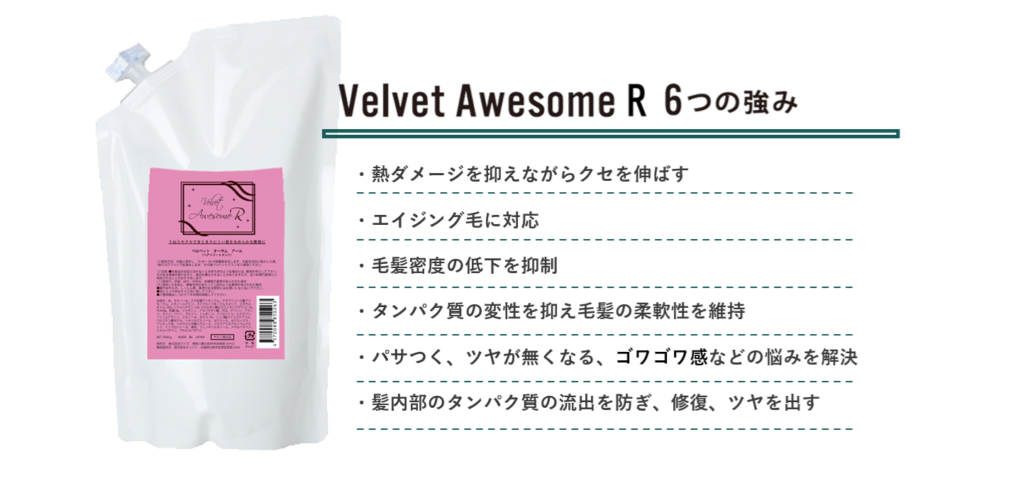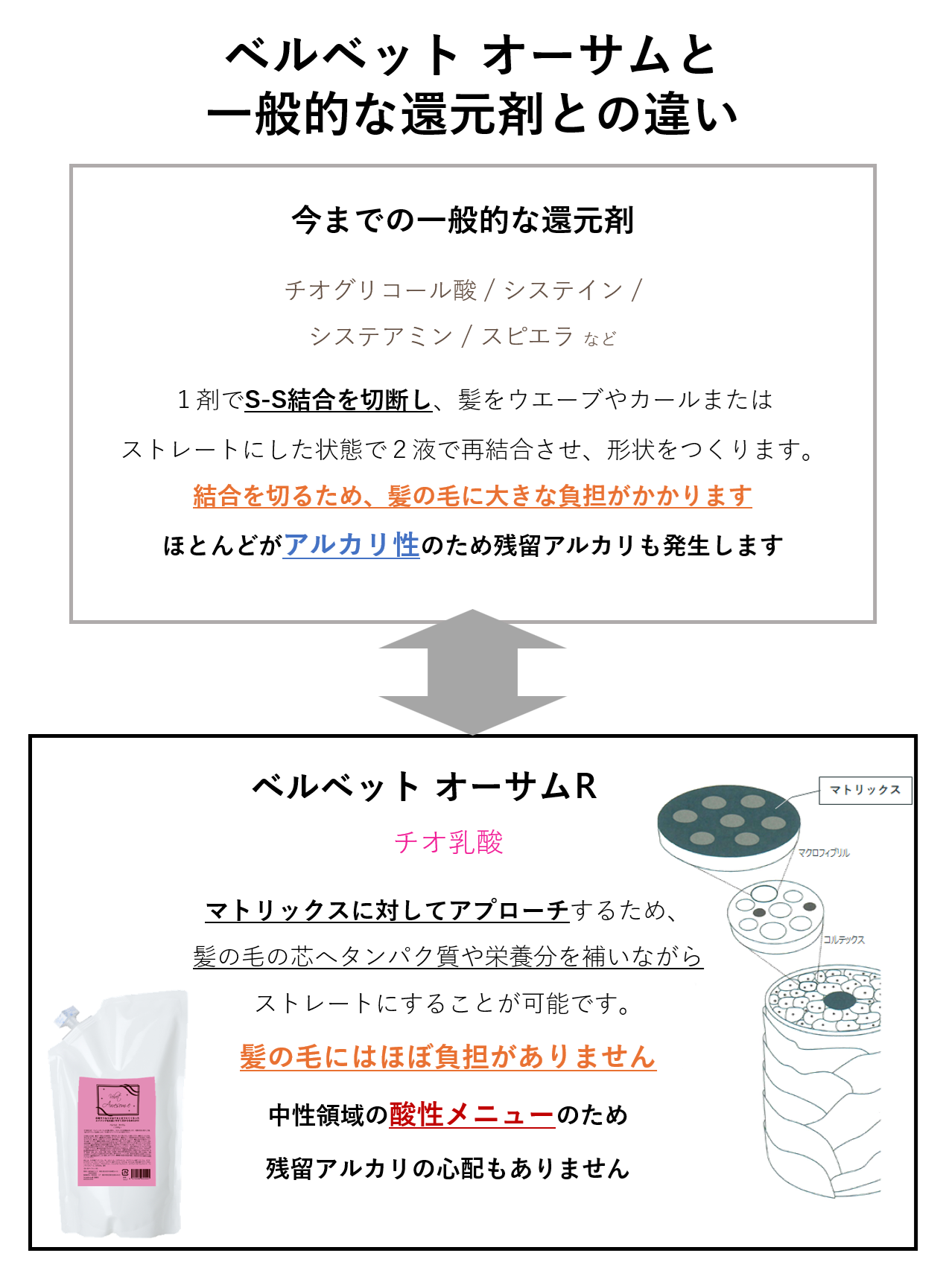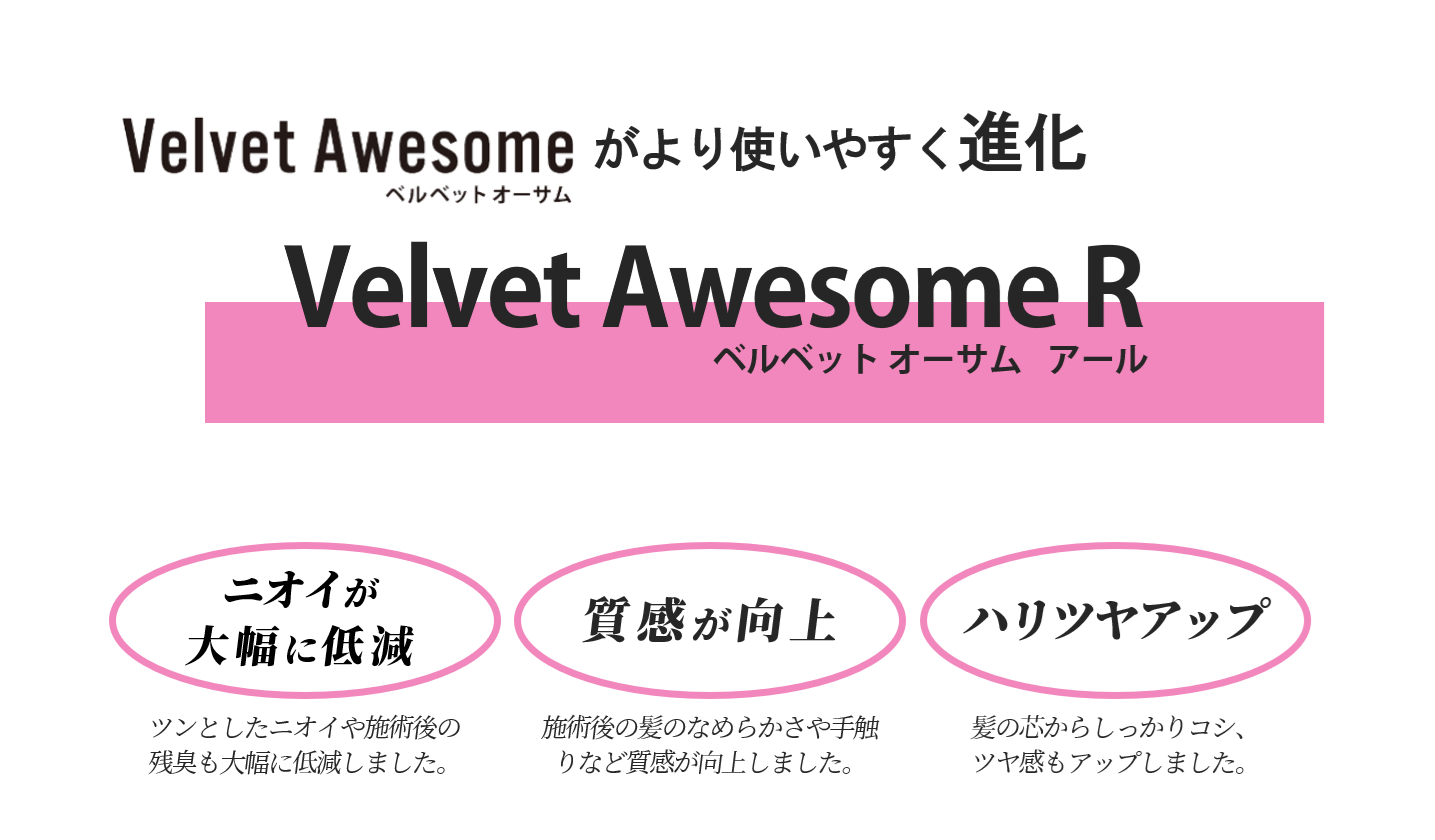 ベルベット オーサムRで 【ベルベット ストレート(縮毛矯正)」 と【 SHITAKU (ストリートメント)の 異なる2つのメニューができます 各メニュの詳しい情報 メニューをクリックするとリンクが開きます サンプル・資料請求、臨店講習など、お問い合わせはこちらから